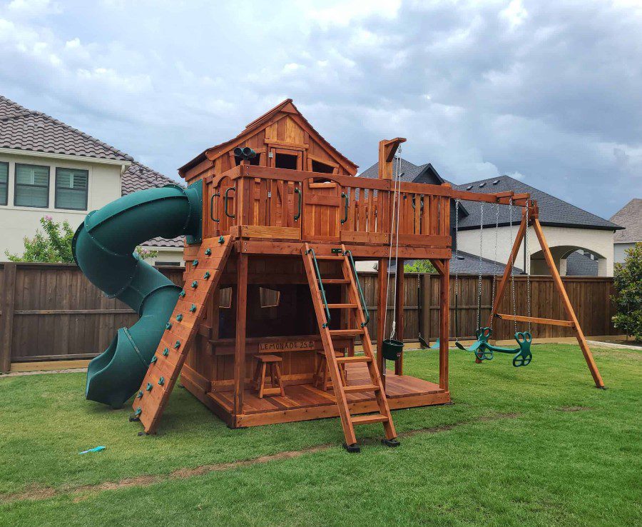 We build and install large swing sets and custom playground structures designed to fit your yard and installed securely for long-lasting, kid-safe outdoor fun.